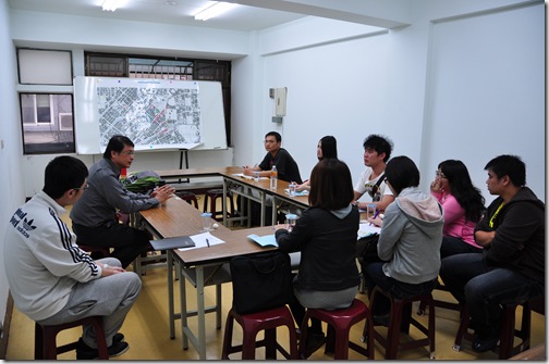 四、15:30 國立雲林科技大學文化資產維護系學生到辦事處集合,聽取中區再發展計劃,並由指導教授李謁政帶領,在中區進行三個星期的文化資產調查工作。